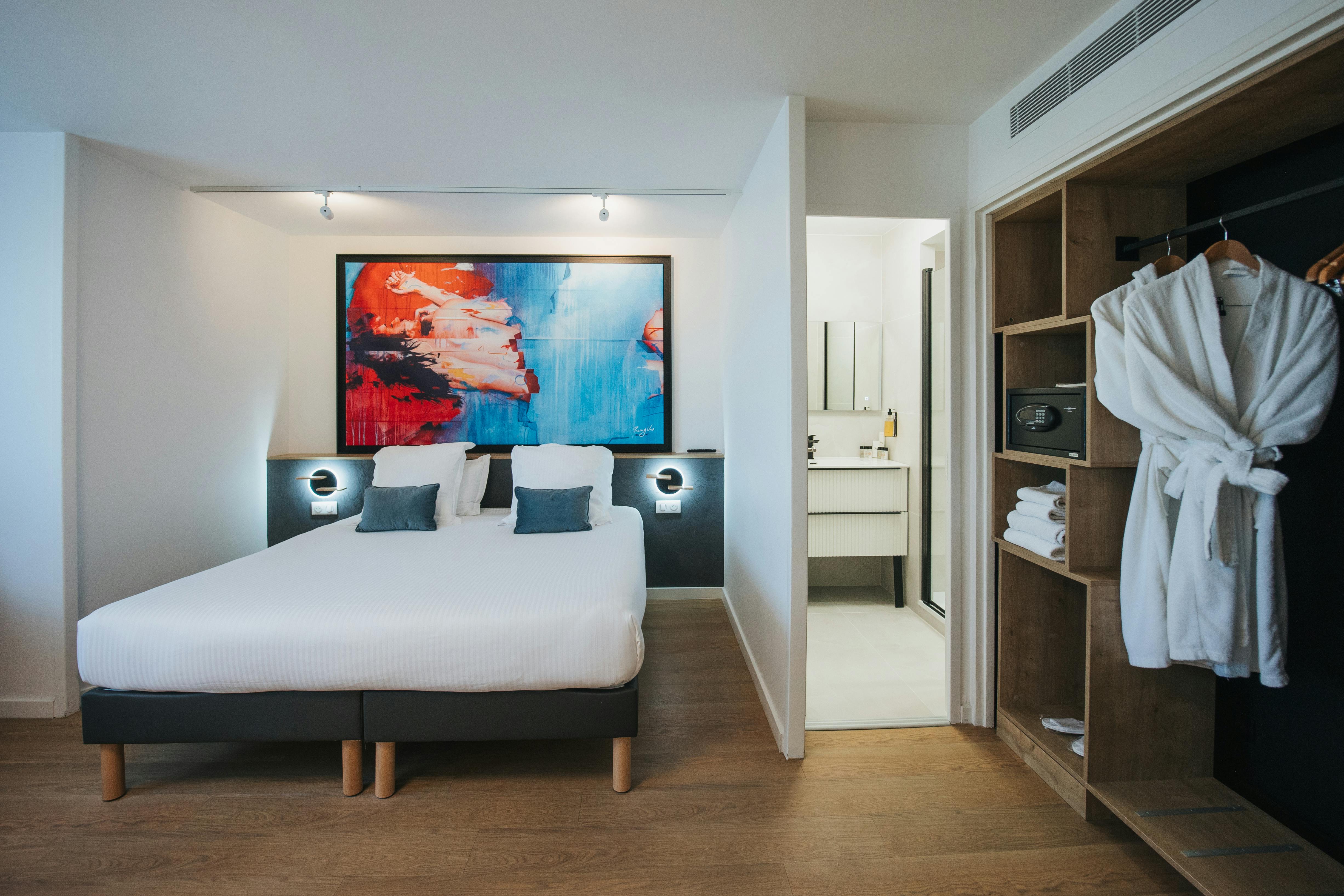 Lit double King size (180x200cm) OU 2 lits simples (90x200cm) > merci d'envoyer un email à reservation@ledrips.com pour spécifier le type de chambre souhaité (Double ou Twin).